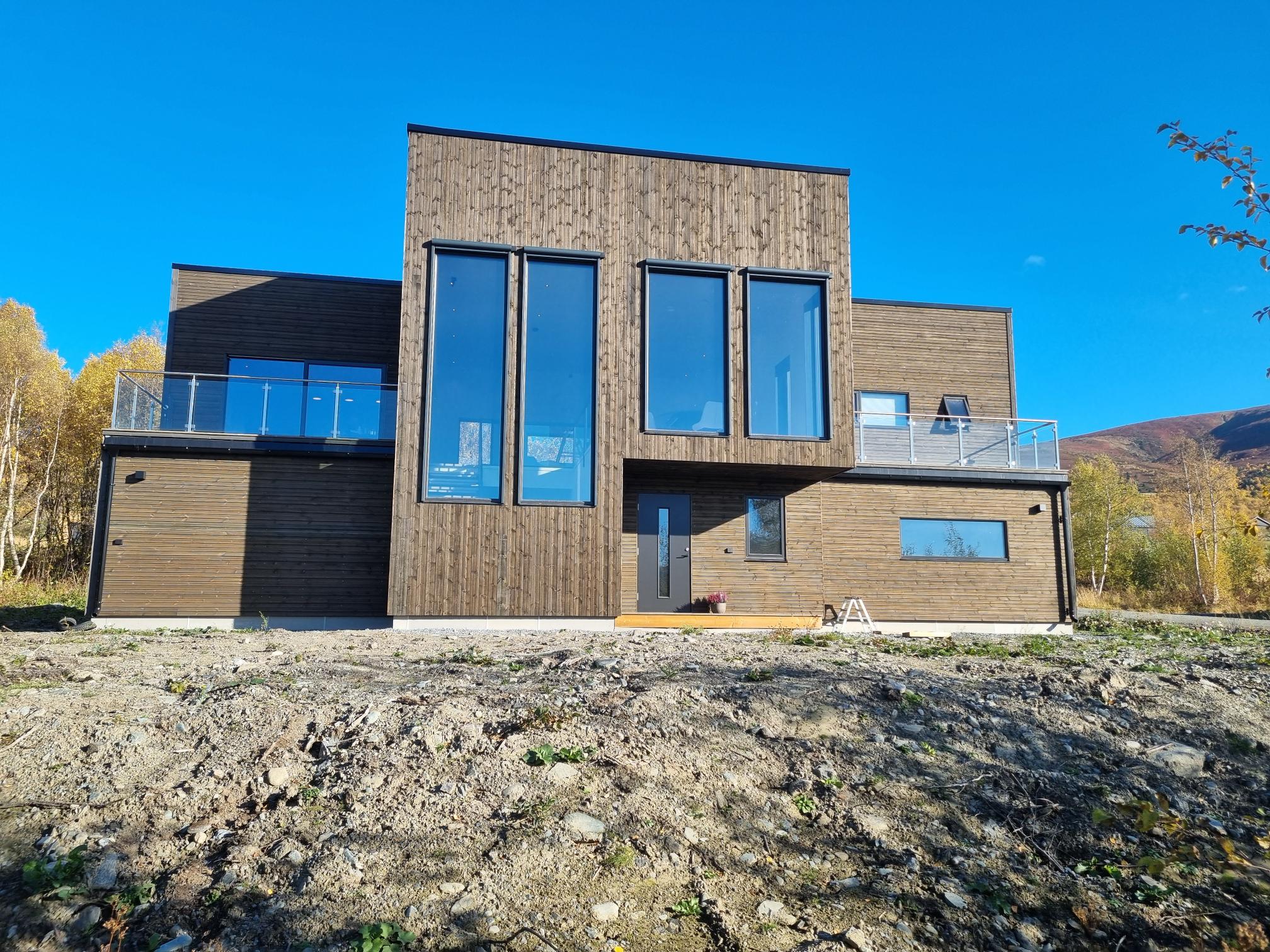 Boligen har to terrasser i andre etasje med god plass til å oppholde seg utendørs, samtidig som det fasademessig gir et åpent og imøtekommende uttrykk.