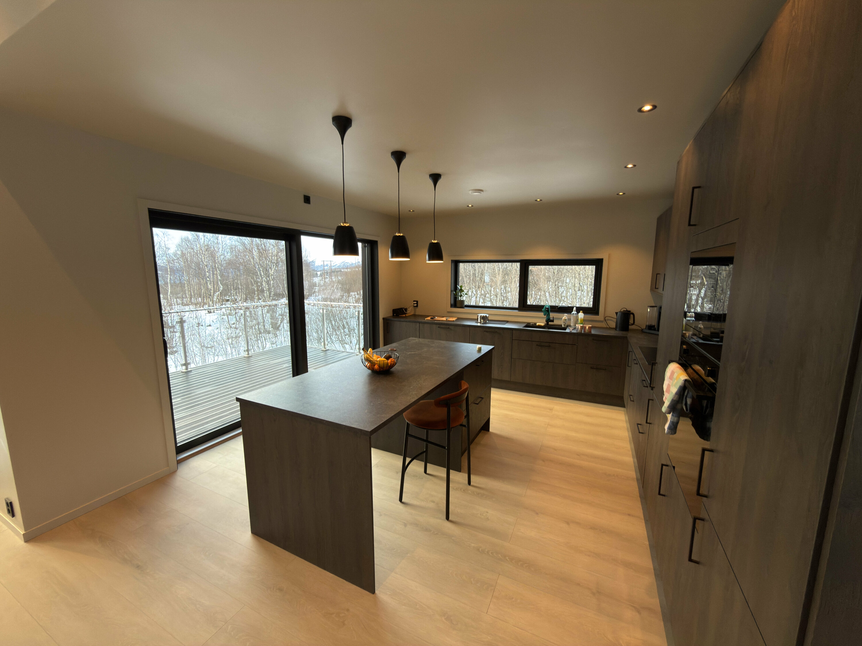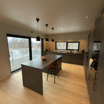 Det er også mulighet for sitteplasser ved kjøkkenbenken.