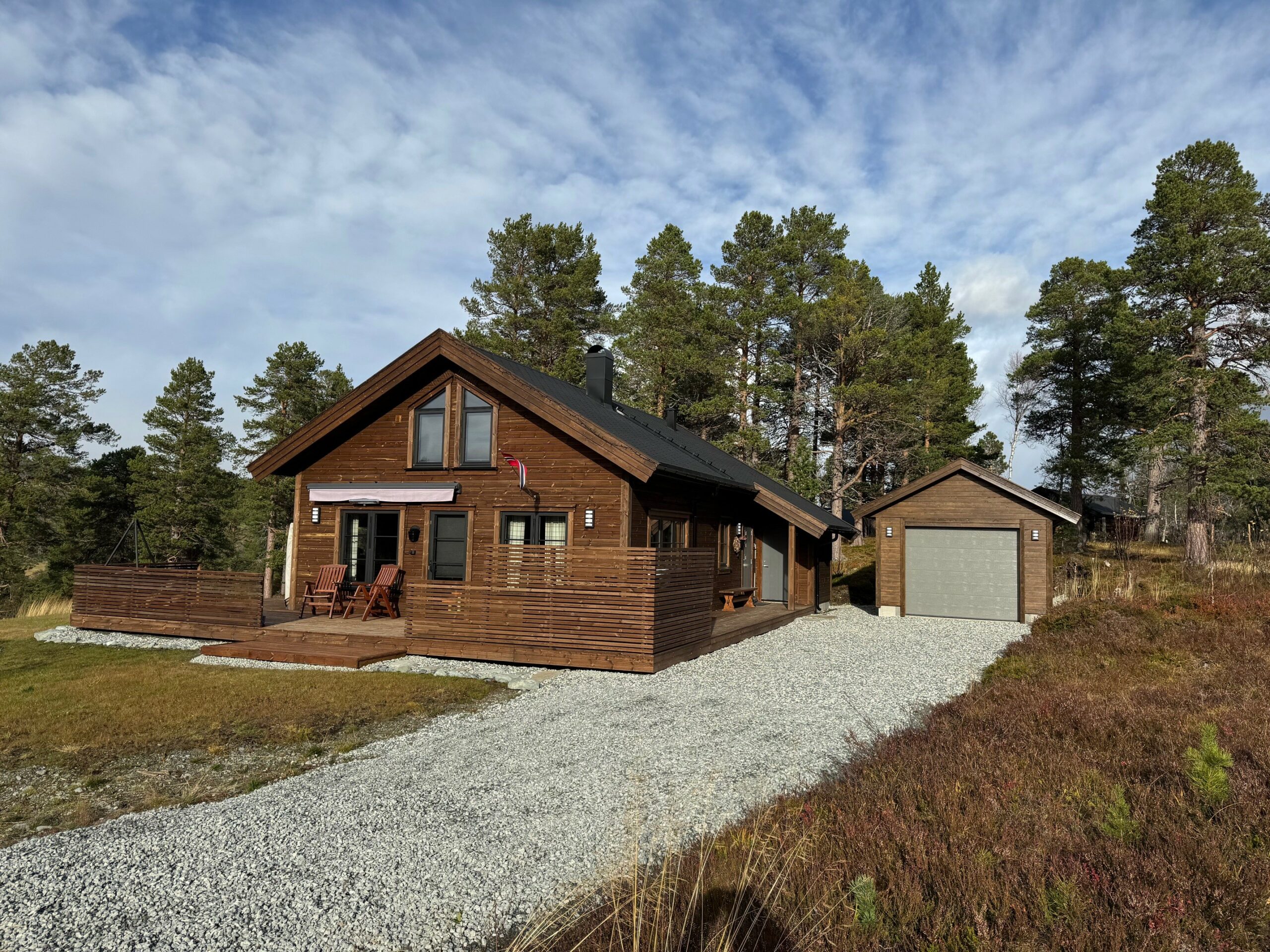 Vi valgte modellen Orkla2 fra Sande Hytte og fikk tilpasset innvendig løsning tilsvarende Skogly. Disse endringene gjorde at vi fikk en hytte vi er veldig godt fornøyd med.